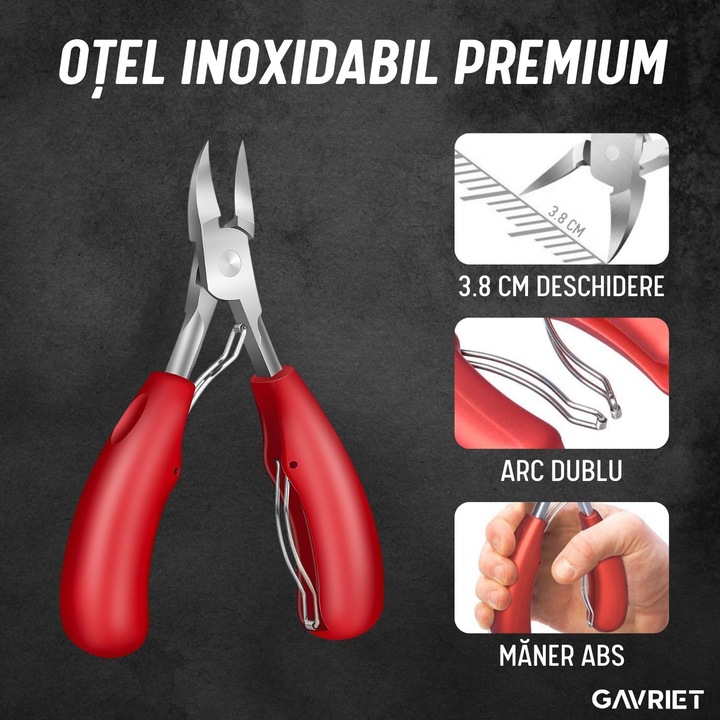 - Design ergonomic și lame ascuțite pentru unghiile groase/incarnate.